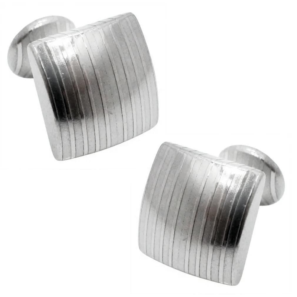 SUWADA謹製カフリンクスは、硬さの異なるステンレスを重ね高圧鍛造で鍛え上げられたられたダマスカス鋼を使用しています。