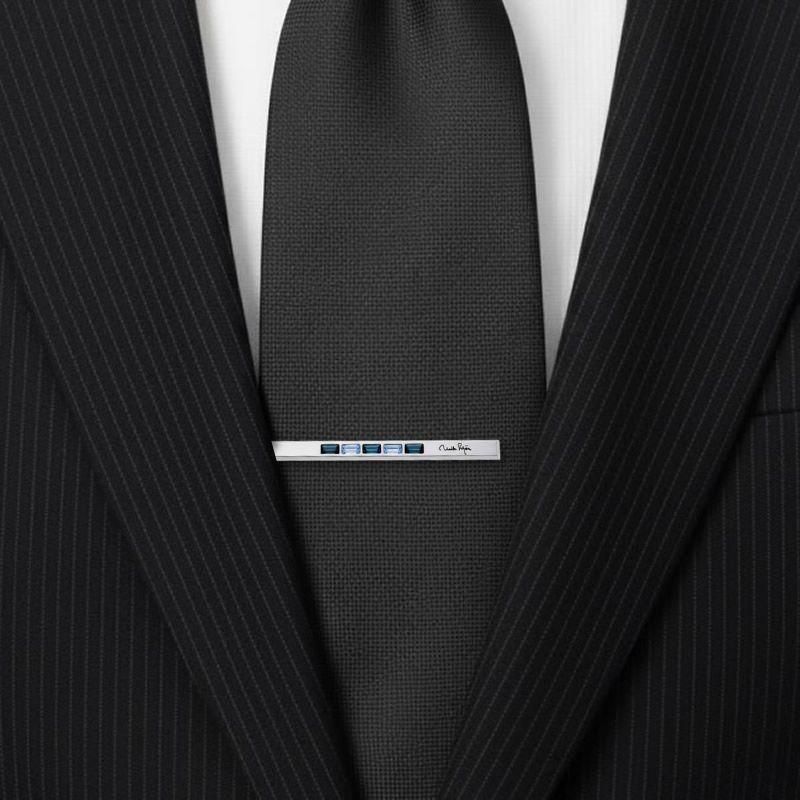 ネイビーの美しいカットガラスを使用したカフスとネクタイピンのセット。