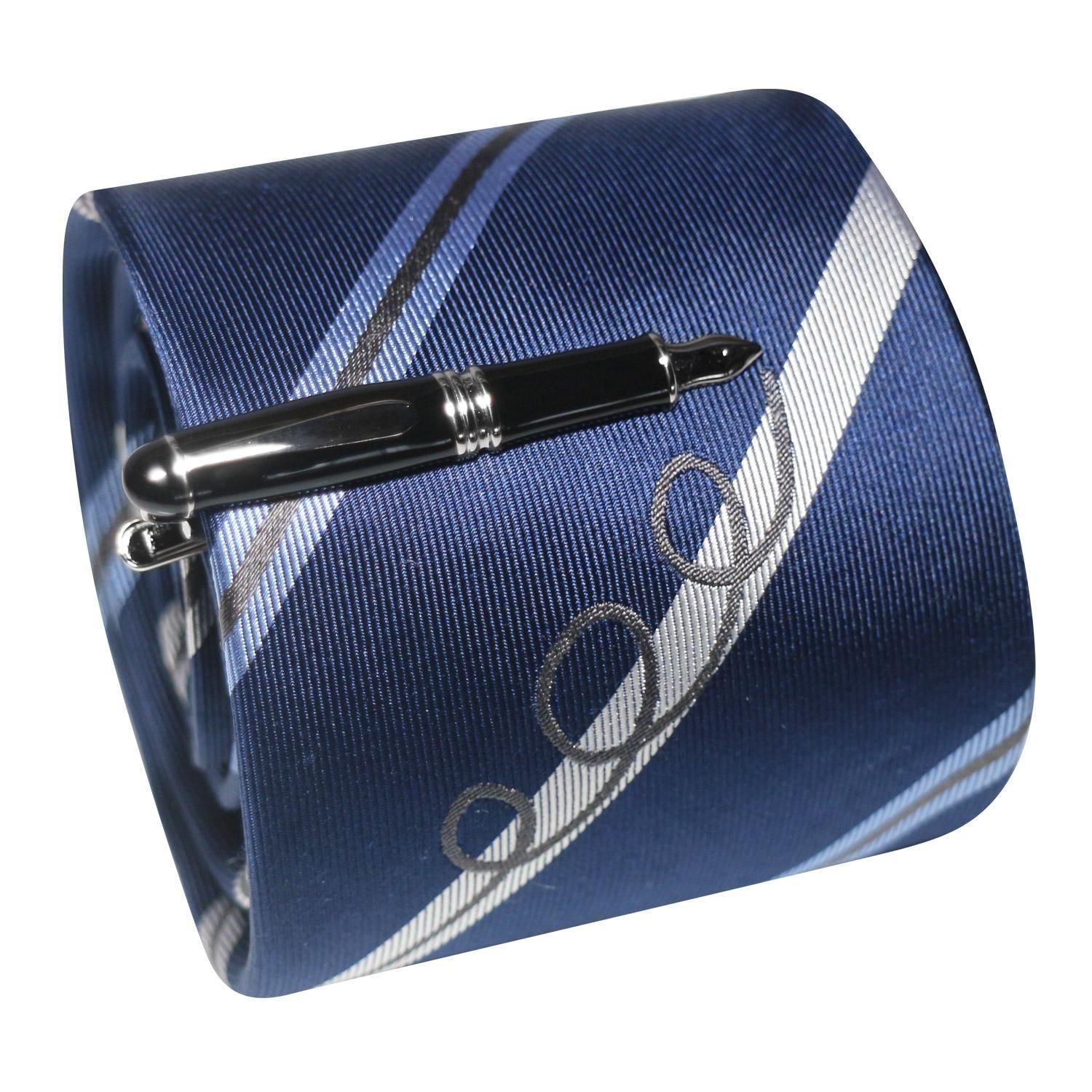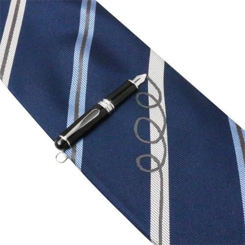 万年筆をモチーフにしたネクタイとネクタイピンのセット。