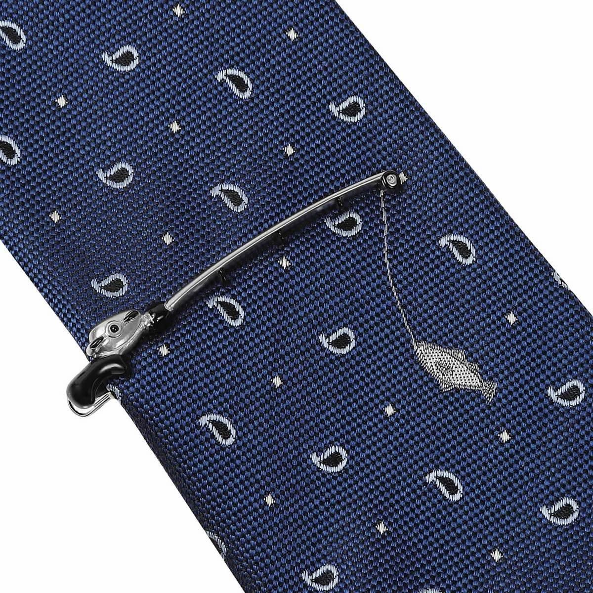 釣り竿をモチーフにしたネクタイとネクタイピンのセット。