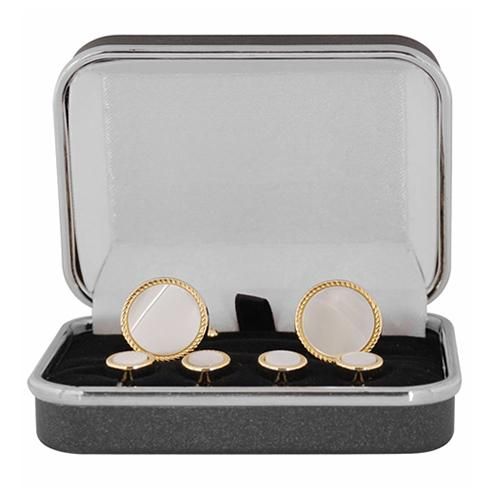 マザーオブパールを使用したカフスとスタッズボタンのセット。