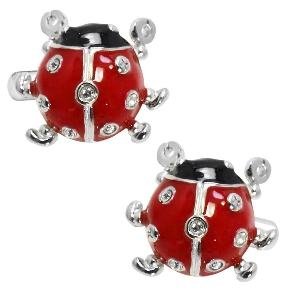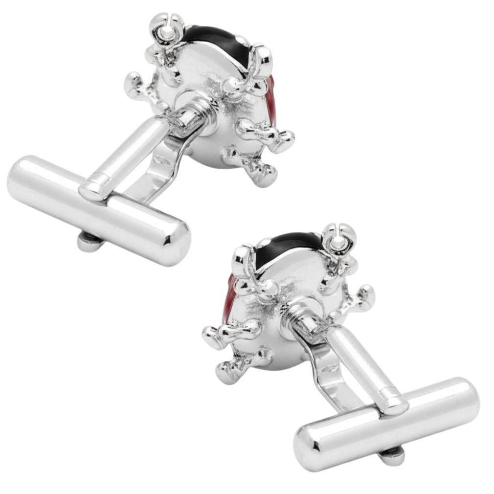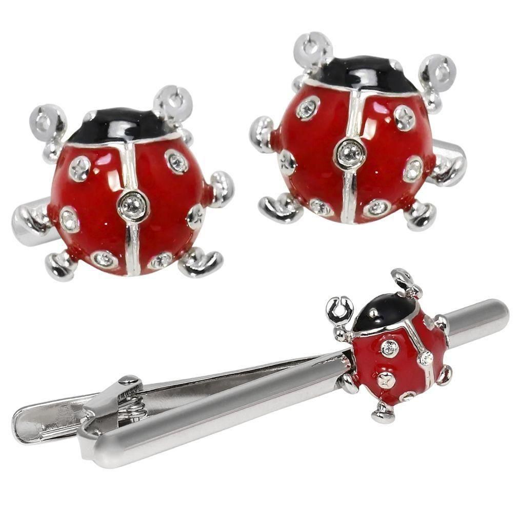 てんとう虫をモチーフにしたカフスとネクタイピンのセット。