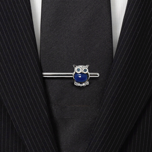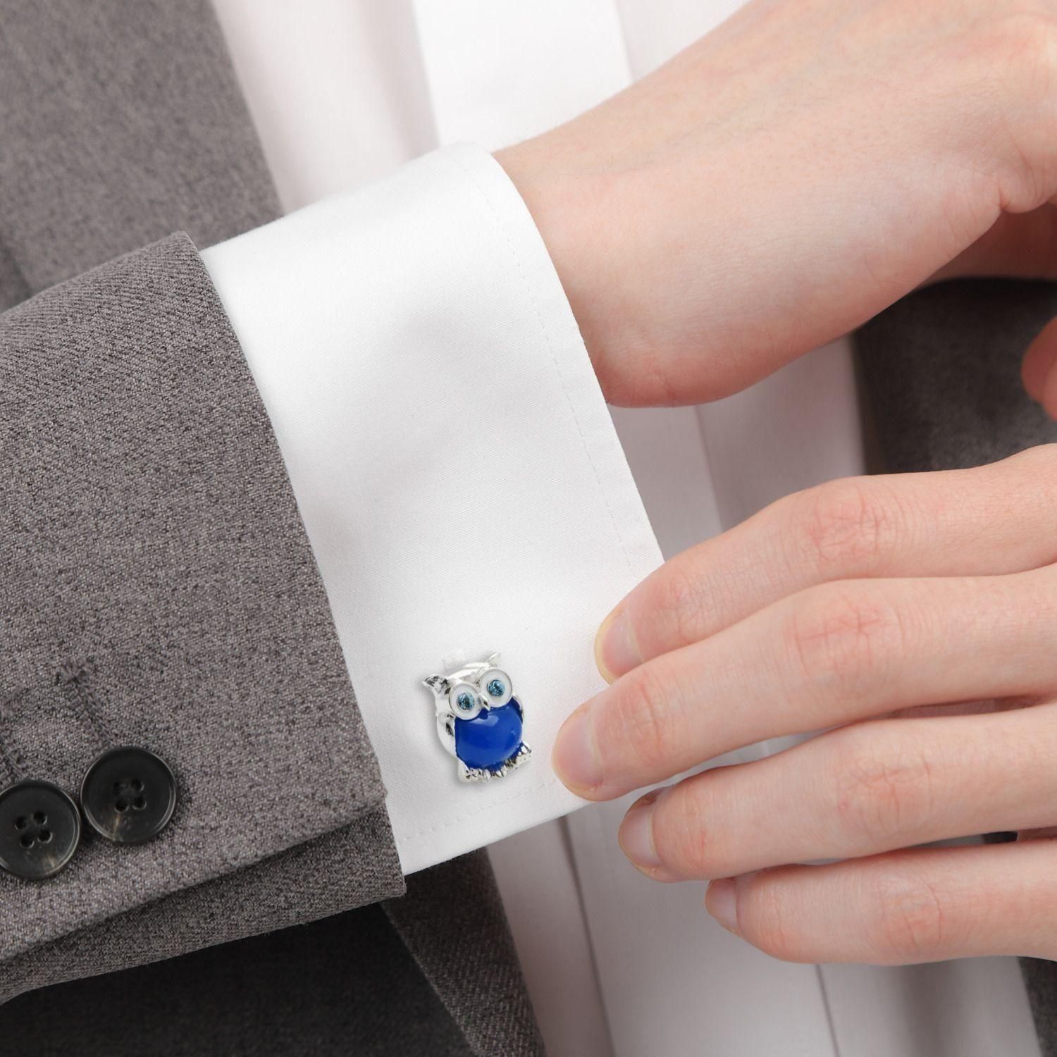 ミミズク フクロウをモチーフにしたカフスとネクタイピンのセット。