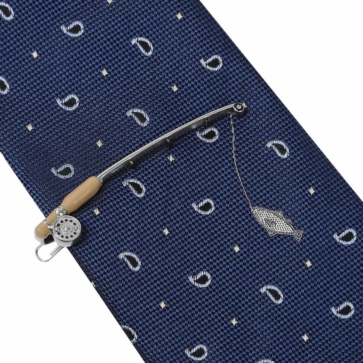 釣り竿をモチーフにしたネクタイとネクタイピンのセット。